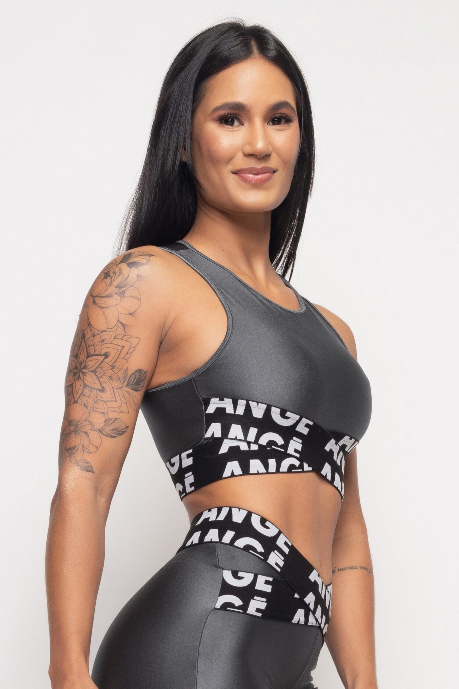 O Top Grafite com brilho Glow Up é forte candidato a virar seu favorito na hora de treinar! Tecido de alta qualidade com brilho e elástico personalizado são o match perfeito pra um Look Fitness cheio de estilo e personalidade. O Top Glow Up tem ajuste perfeito, garantindo suporte e sustentação durante qualquer tipo de treino.